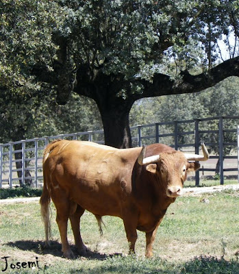Un cercado de toros de saca sesteando , nos da la bienvenida .